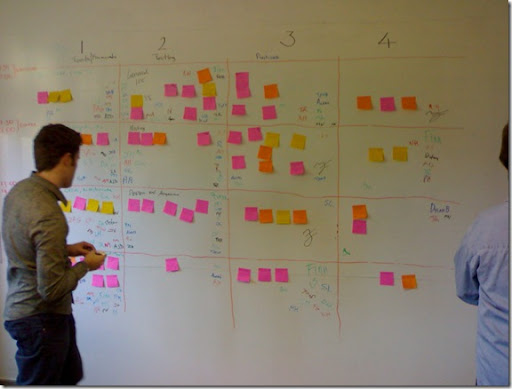 The night before we all put our suggestions for topics on the white board wall (see the photo above) and then retired to the pub. Ian, Alan and Ben organized them into topics the next morning. To kick off the day in one room, I'd suggested the topic of IoC containers after my talk at DDD. I briefly introduced the subject by describing how I'd come to the IoC game via TTD and Dependency Injection. Uber blogger Roy Osherove (who'd come all the way from Israel) then started up a really interesting discussion around the limits of IoC, or rather how doing TDD forces you to do DI rather than giving you a choice. It was a very good point, and one that hadn't really struck me before. Of course Roy works for Typemock, so he obviously interested in showing how Typemock can alleviate TDD's arm lock on your architecture. Personally I'm still in my honeymoon period with IoC containers and TDD and haven't found the edge cases yet where I feel like enforced DI is dragging my architecture or productivity down enough that I need to do something about it. The discussion continued about the depth of unit testing that's appropriate, how to test legacy code and tradeoff between integration and unit tests. All good stuff.
